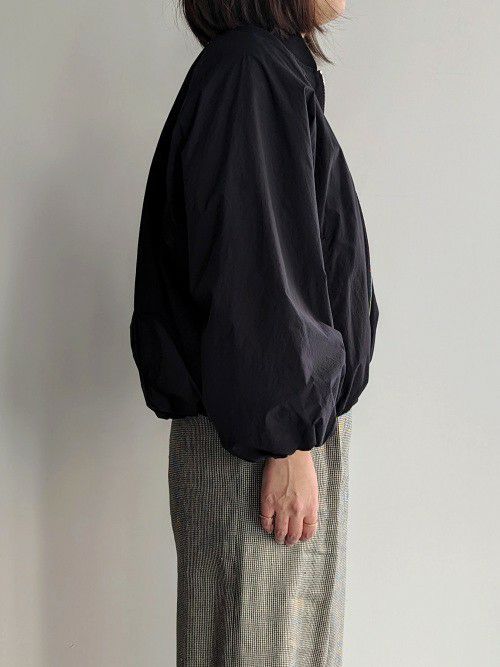 フロントはジップアップ仕様で、開閉しやすいデザイン。袖口と裾にゴムが入っており、ふんわりとした丸みのあるシルエットを作り出します。ミニマルながらもTICCAらしい上品な雰囲気が漂う一着。