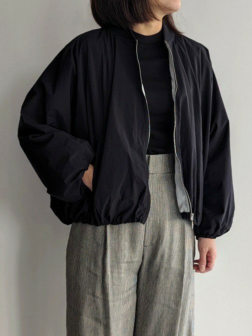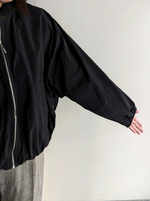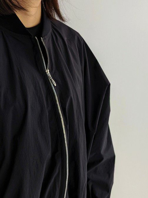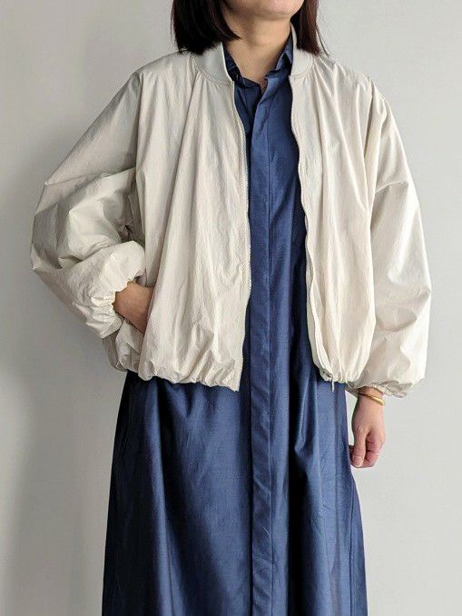 ナイロン生地を使用した、着心地軽やかなMA-1ブルゾン。落ち感のあるビッグシルエットが特徴で、リラックスした雰囲気を演出します。