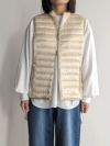 程よく艶感のある素材が上品で、年齢問わず着て頂けるデザインのダウンベスト。