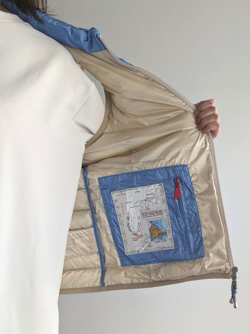 ウエスト部が緩やかにシェイプしている事で、すっきりとした見栄えの良いシルエット。中綿はダウン90%フェザー10%の黄金比率ですので、軽さと温かさが魅力的な一着です。