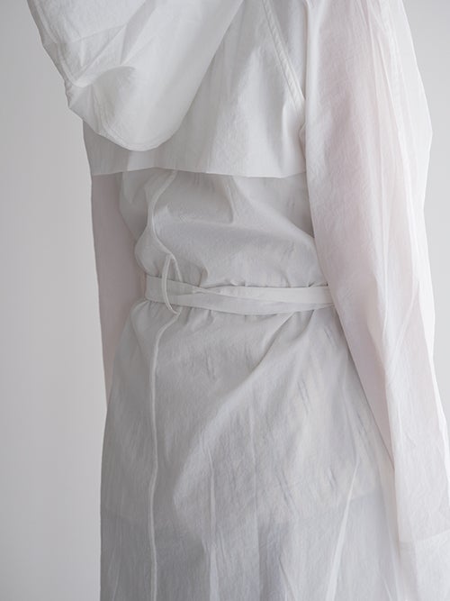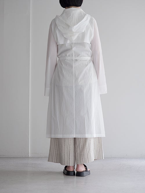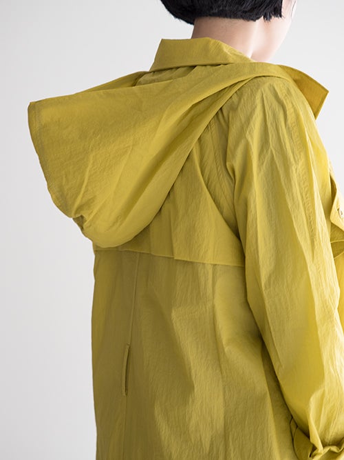 立体的なフードとゆとりのあるシルエットが程よい抜け感を演出。オリーブ・ホワイト・レッドの3色展開で、スタイリングに合わせて選べるのも魅力。軽量で持ち運びもしやすく、季節の変わり目や旅行にも活躍する一着です。