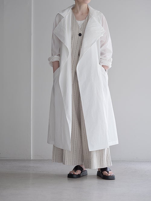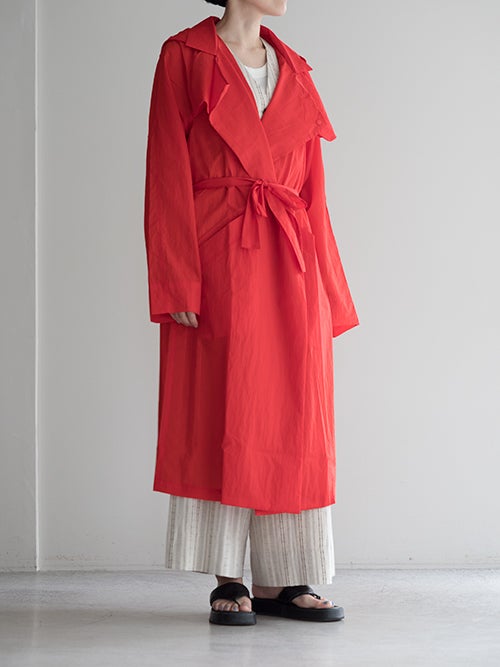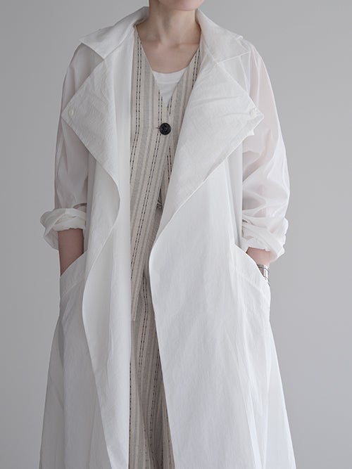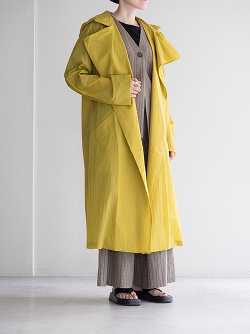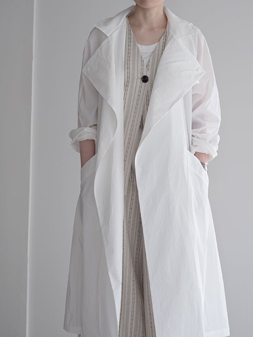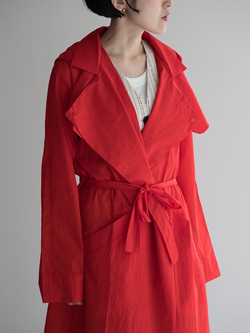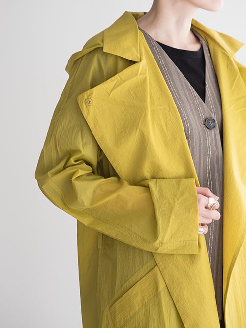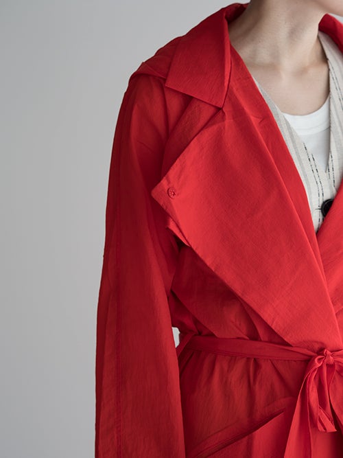 軽やかなナイロン素材に撥水加工を施したウォータープルーフコート。急な雨にも対応できる機能性とデイリーに映える洗練デザインを兼ね備えています。