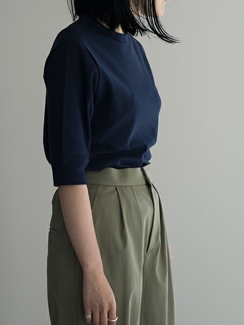 人気シリーズのリピート。柔らかいコットンフライス生地を使用した5分袖カットソー。