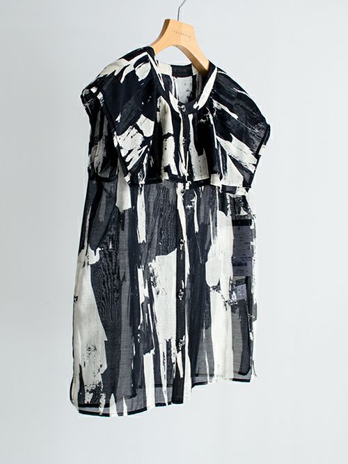 肩回り全体を覆う大き目の襟が、思い切り露出する腕を優しくカバーしてくれます。シルク混素材で上品な風合いで合わせるアイテム次第で綺麗め、カジュアル、様々なコーディネートを楽しめます。