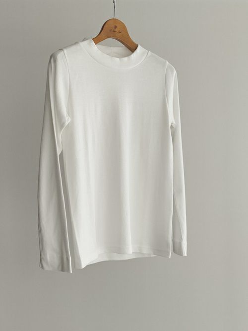 伸縮性があり、程よいフィット感なあるカットソーを使用しています。丸胴型でサイドに縫い目がないので、着心地もよくお洗濯でも型崩れしにくいのもポイントです。1枚で着るのはもちろん、インナーとして重ね着にも重宝する一枚です。