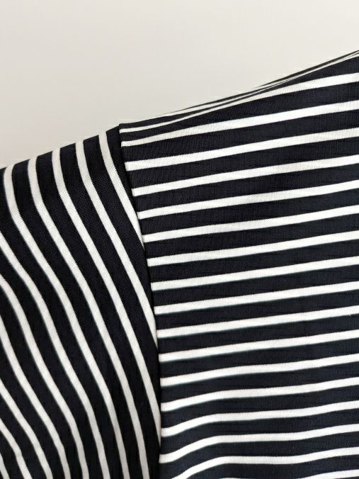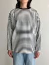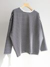 ドロップショルダーで立体的なコットンボーダー。後ろ身頃でステッチが入っており単調になりがちなボーダー柄をシンプルにデザインしています。