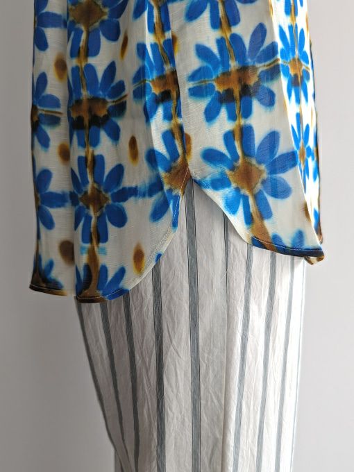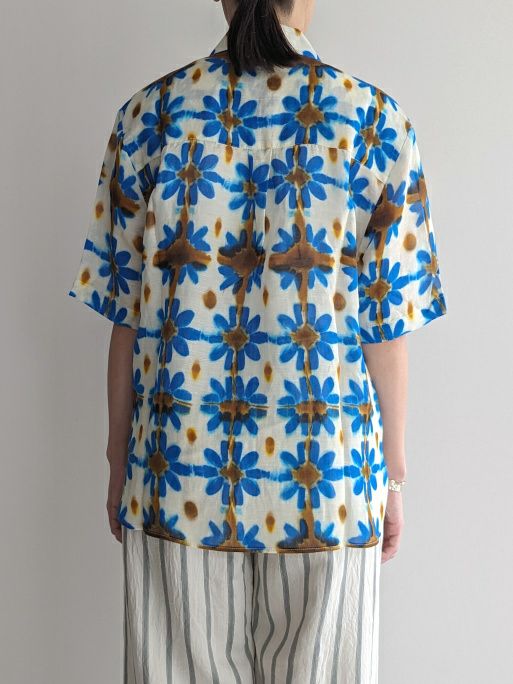 クロエストラ レーヨンリネンシャツ 花柄 BLUE