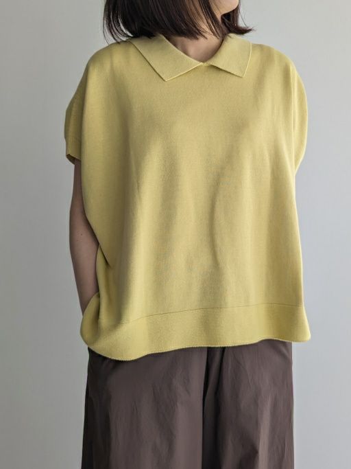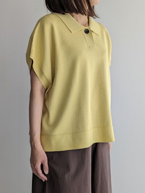 ポンチョシルエットのリラックスフィット2WAYポロニットです。スリーブレスでゆとりのあるサイズ感ですが、きちっとした印象を与える前後2WAYで着用できる大人のプルオーバーポロニットです。