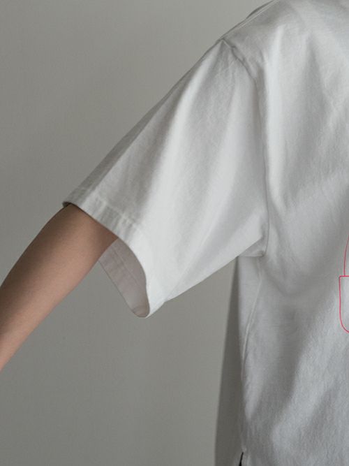 『やっぱり家が一番落ち着く』といった意味合いのメッセージが、ポップなカラーリングでプリントされています。ワイドシルエットで、着心地は軽くストレスフリーな肌触り。ボリュームのあるパンツやスカートなど、ボトムスを選びません。