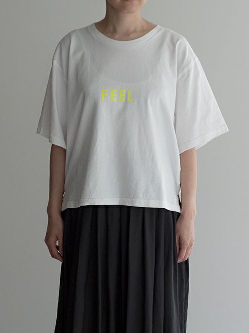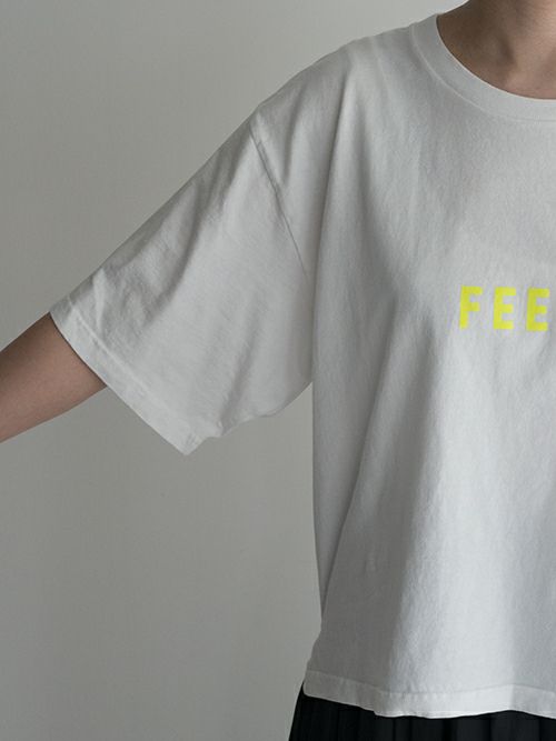 フロントに『FEEL』、バックに『GOOD』とプリントされた、まさに『いい感じ』な気持ちの高まるTシャツ。ワイドシルエットで、着心地は軽くストレスフリーな肌触り。ボリュームのあるパンツやスカートなど、ボトムスを選びません。