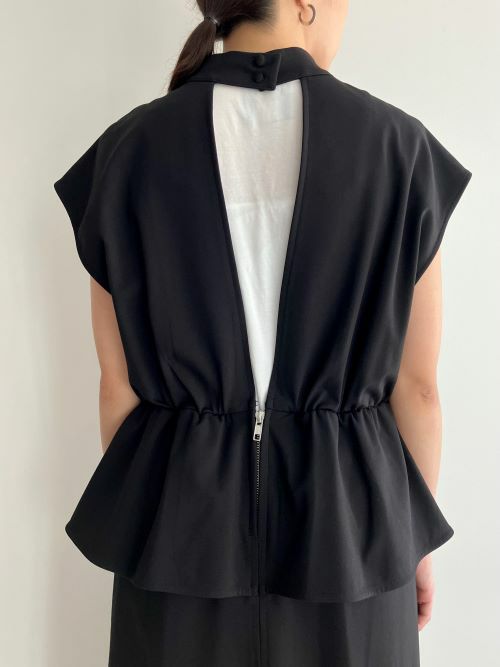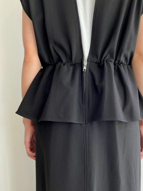 ウエストのフレアデザインと、バックスタイルの大胆なVカットデザインが、洗練された女性らしい印象を与えてくれます。オケージョンからデイリー使いまで幅広く着用できる一着。