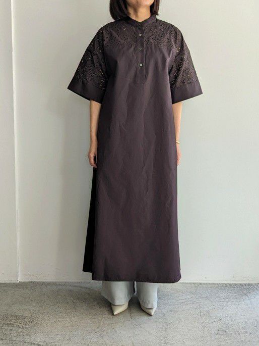 オリジナルレースは国内で作られており、生地に直接刺繍とカッティングの加工を施しているエンブロイダリーレース。程よいレーシー感が魅力的なワンピースです。