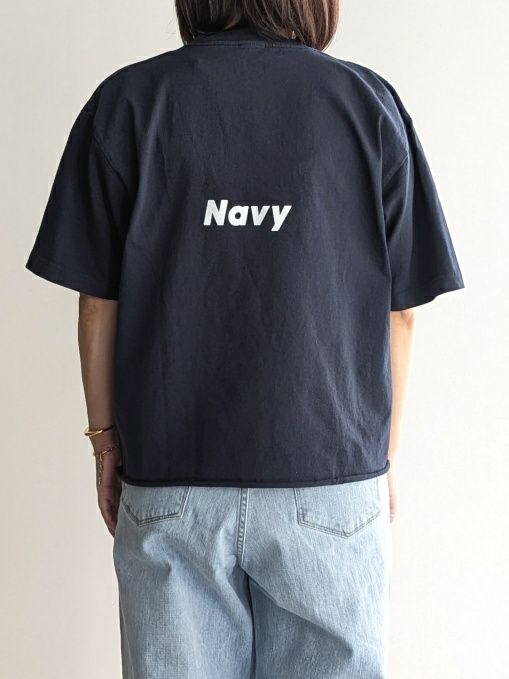 裾のカットオフデザインが特徴的で、こなれた抜け感を演出。メッセージの込められたロゴは、フロントからバックへと繋がるデザインで、お出掛けするのが楽しくなる一着です。