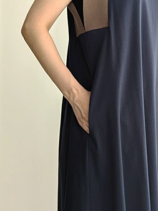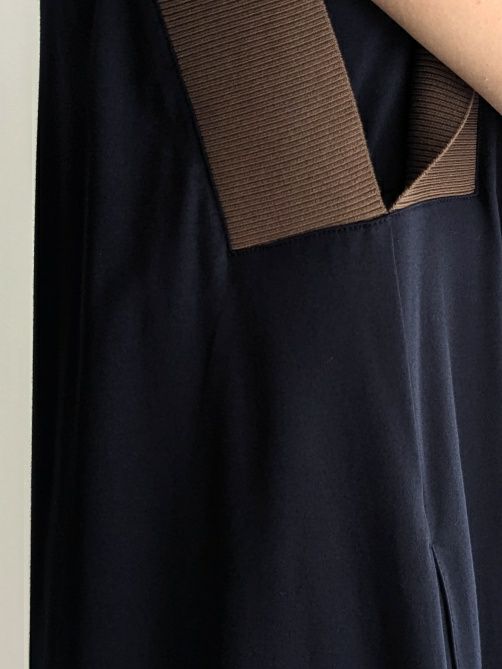ニット×カットソーの使い合わせワンピースです。ニット部分は凹凸がわ
