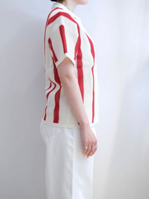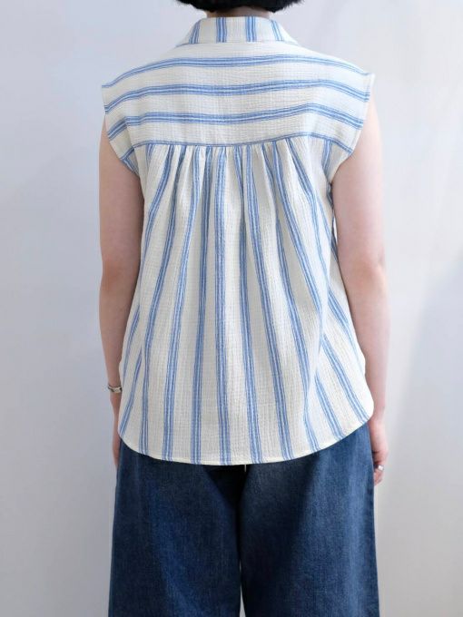 クロエストラ フレンチスリーブストライプシャツ ARMINI BLUE.S