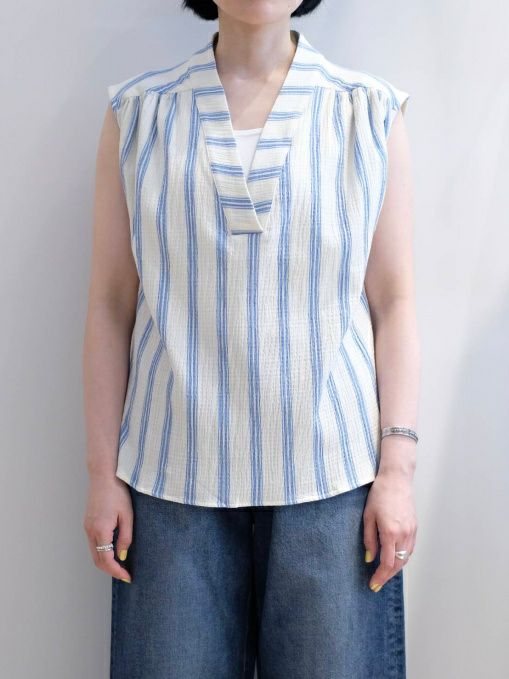 クロエストラ フロントヨークストライプシャツDIANY BLUE.S