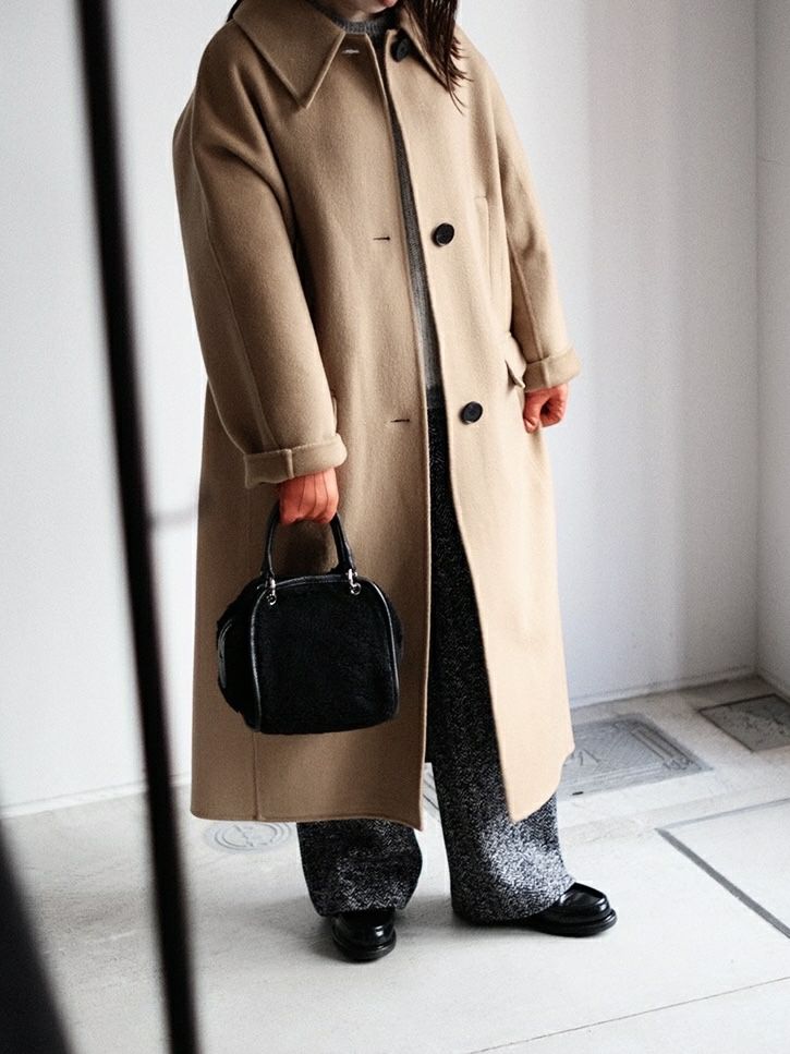 ソルトプラスジャパン フェイクムートンチェスターコート BLACK