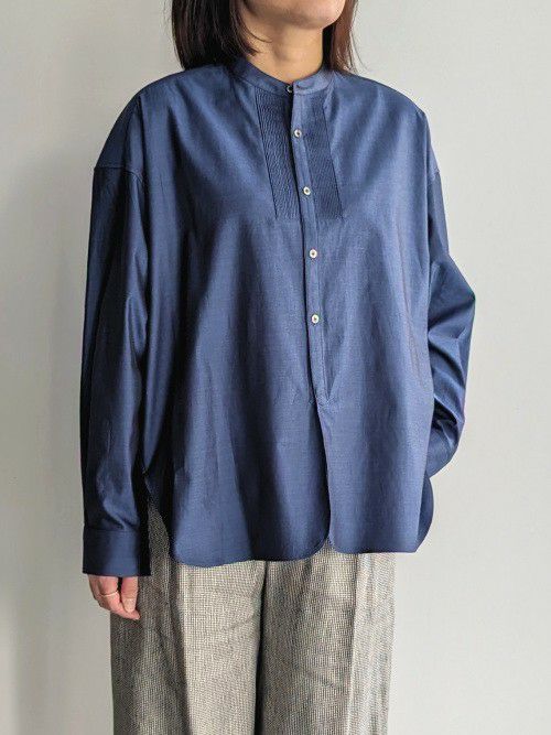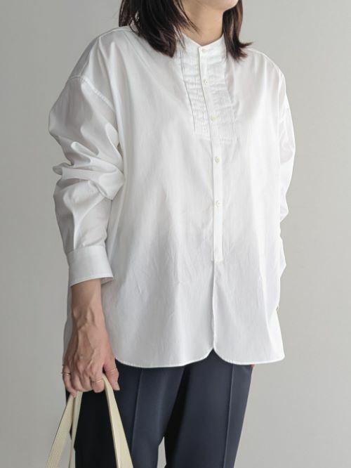 ティッカ ピンタックノーカラーシャツ 【全3色】