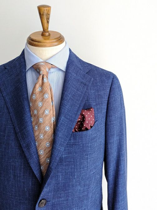 イタリアの専業工房にてハンドメイドで生産されており、定番のシルク素材から春夏のコットン、リネン、秋冬はウールと、四季折々のネクタイ、スカーフ、チーフ等をリリースしています。