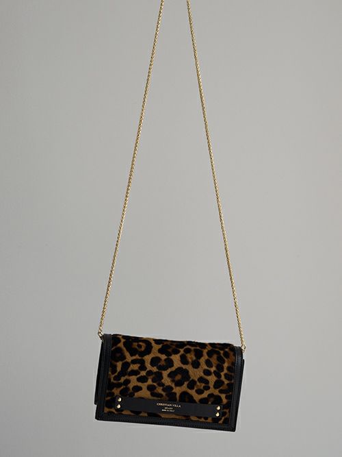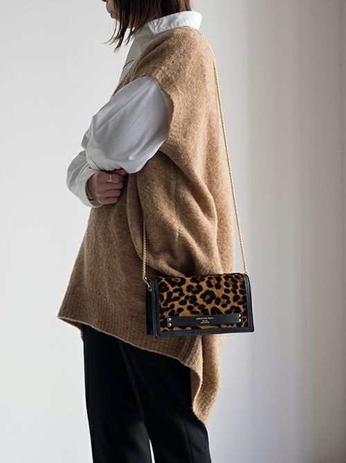 アクセサリー感覚で持てるレオパード柄のハラコ素材がポイントのバック。