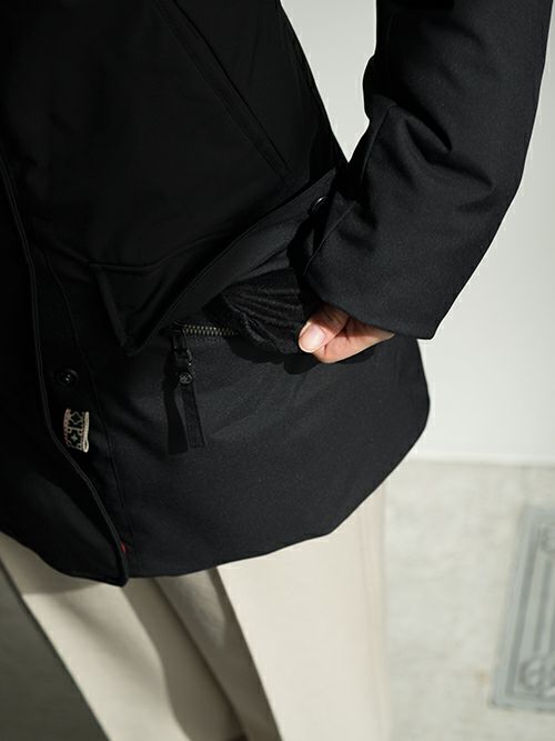 着膨れしにくい、程よくすっきりしたラインで着て頂けます。-25℃対応の防寒機能の本格派ダウン。ヒップが隠れるミドル丈なので、どんなボトムスともコーディネートして頂きやすいです。