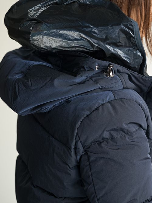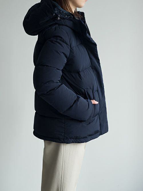 コンパクトですっきりとしたシルエットが魅力的なショートダウン。