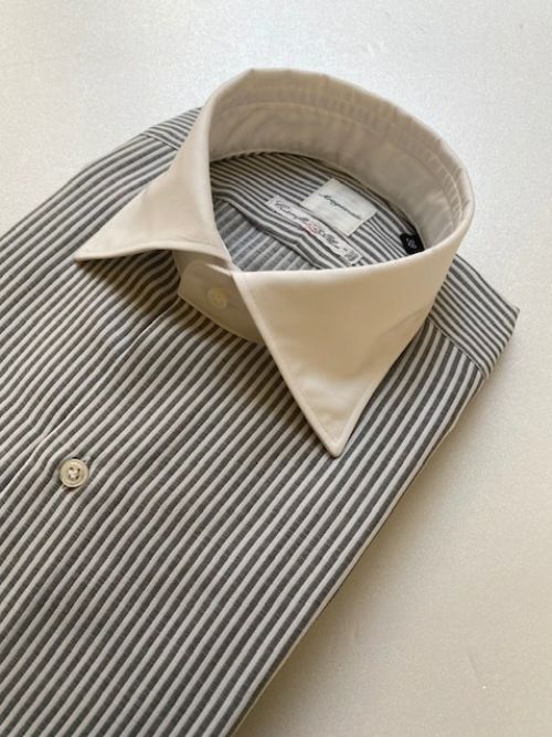 カッティングとパターンの巧みさがこのシャツの真骨頂で、マシンメイドのシャツとして妥協なく作り込んだハイエンドなコレクションです。