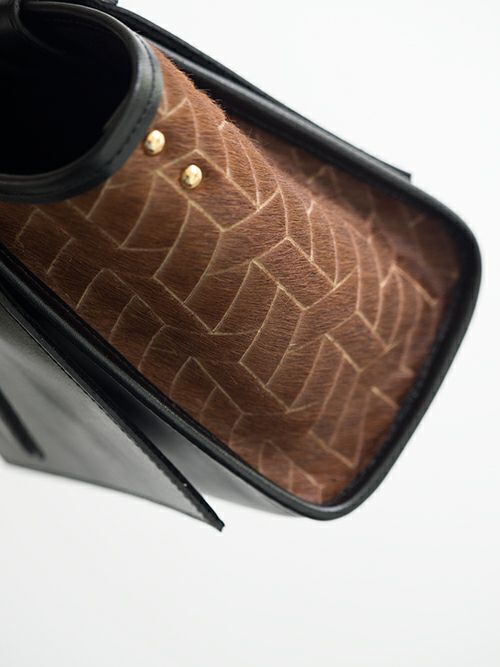 クリスチャンヴィラ、2WAYハンドバッグです。サイドにブラウンのハラコを合わせた上品な見た目。外ポケットが前後についており、使いやすさもあり、シックな大人の装いにマッチするデザインです。マチは四角く安定感があり、取り外し可能なストラップ付で、シーンにあわせて変更していただけます。
