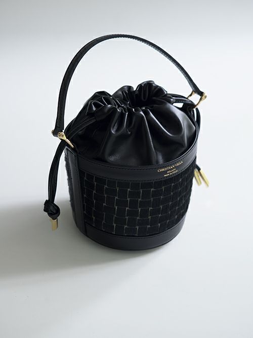クリスチャンヴィラ バケツ型2WAYワンハンドバッグです。バケツ型のボディに格子状に施されたハラコ合わせた上品な見た目。シックな大人の装いにマッチするデザインです。小ぶりながらも、マチ付きで容量もあります。取り外し可能なショルダーストラップ付でシーンに合わせて変更していただけます。