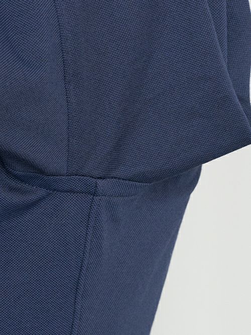 通常量産のシャツでは、生産効率のため脇縫いから袖先まで一気に縫い上げる物がほとんどですが、腕の運動量を考えた上、袖パーツを後付けし、より立体的に作り込んでいます。