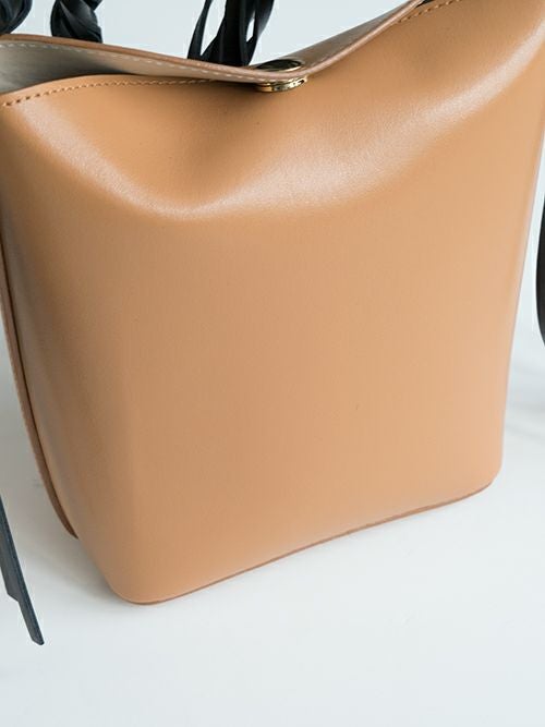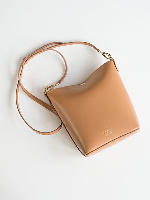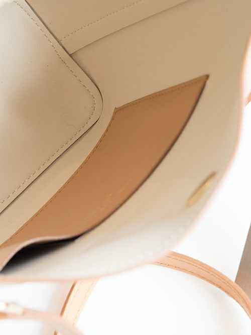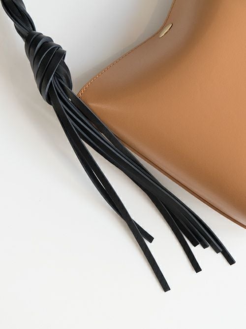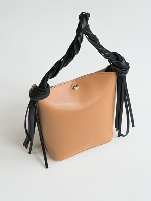 両サイドに垂れたレザーフリンジが印象的なバッグ。フリンジは取り外せて、結ぶ位置で長さ調節も可能。好みの長さで持つことが出来ます。マチがあるのでしっかり必需品も収まり、上部釦仕様でセキュリティもしっかりしていて安心して使えます。シンプルながらも存在感があり、様々なコーディネートに華を添えてくれるバッグです。