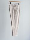 腰回りは1タックで程よくゆとりを持たせながら、裾にかけて自然なテーパードがかかっています。コットンピケのさらりとした肌触りも魅力的で、オンオフ問わずコーディネートに取り入れられる上品な一着。