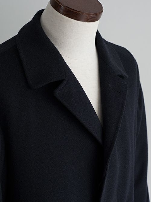 比翼仕立てにする事で、フロント釦を閉じた際にクラシックな雰囲気を演出してくれるステンカラーコート。
