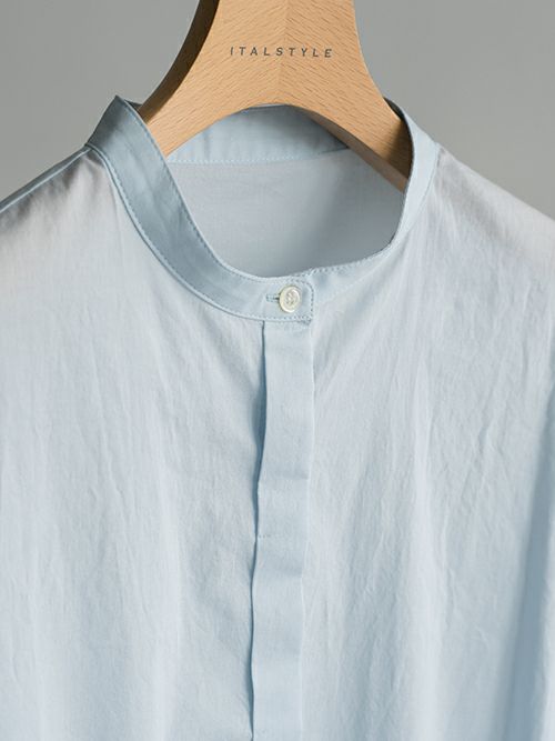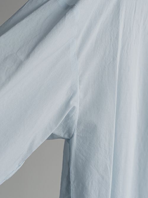 コットンのナチュラルな風合いをそのままに、自然なシワ感が特徴のソフトワッシャー加工を施したブラウス。腰回りの切り替えギャザープリーツが女性らしく、とても柔らかみのある仕上がりです。フロントは比翼となっており、ボタンが見えないことで、スッキリと清潔感のある印象を与えてくれる一着です。