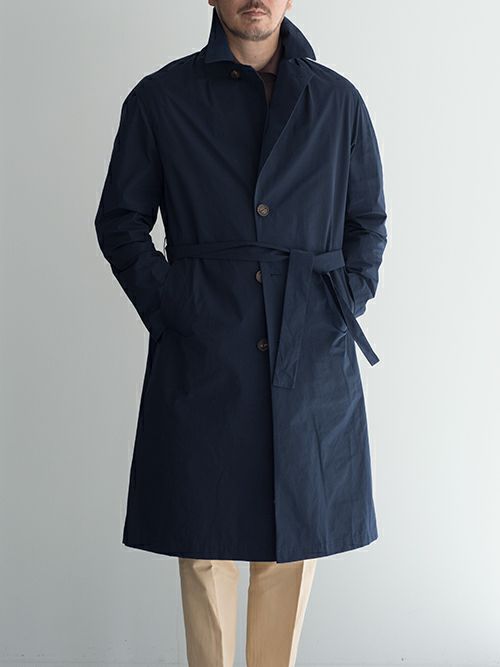 ポリエステル、コットン混生地を使用したHevo(イーヴォ)のステンカラーコート。