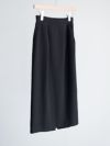 フォーマルで使えるブラックスカート。適度な肉感が体のラインを拾い過ぎず、滑らかに落ちるシルキーなツインダブルクロスを使用しており、女性らしい美しいシルエットが特徴。流行り廃りのないシルエットで、長く着て頂けます。皺になりにくいポリエステル素材で、ご自宅での手洗いが可能です。