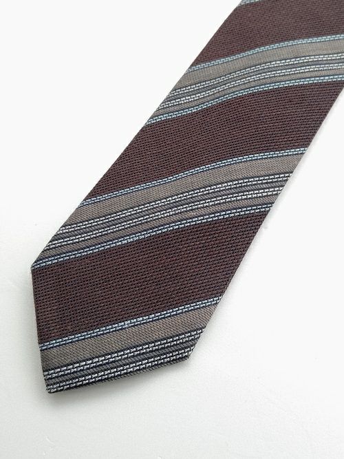 上質なリネン、シルク混紡素材を使用したストライプ柄ネクタイ。春夏に適した軽やかな表情が、Vゾーンに清涼感を生み出す1本です。