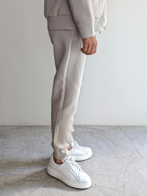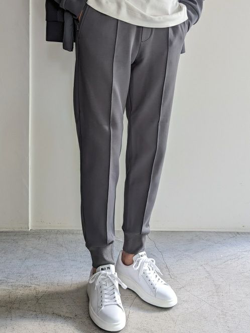 ストレッチ性が高く、すっきりとしたシルエットが魅力的なジャージー素材のパンツ。ストレスのない着用感でありながら、スタイリッシュなスタイリングが叶います。