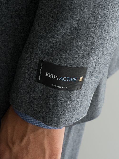 生地はREDAのコレクションの中でも、高いパフォーマンスを誇るREDA ACTIVEを使用。ウールが本来持っている保温性、通気性、耐熱性などの高機能はそのままに、毛羽が少なく上品な風合いが魅力です。