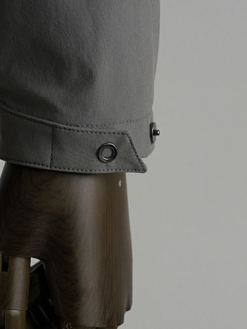 また、多少の雨であれば、水を玉で弾くほどの撥水機能も備えています。フロントのダブルジッパーは、イタリアLampo社の最高ラインを使用。袖のスナップ釦や裾内側に配したドローコードにも高級感があり、アクティブシーンだけでなくファッション性にも優れた一着です。