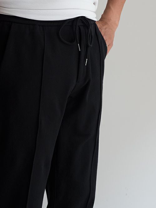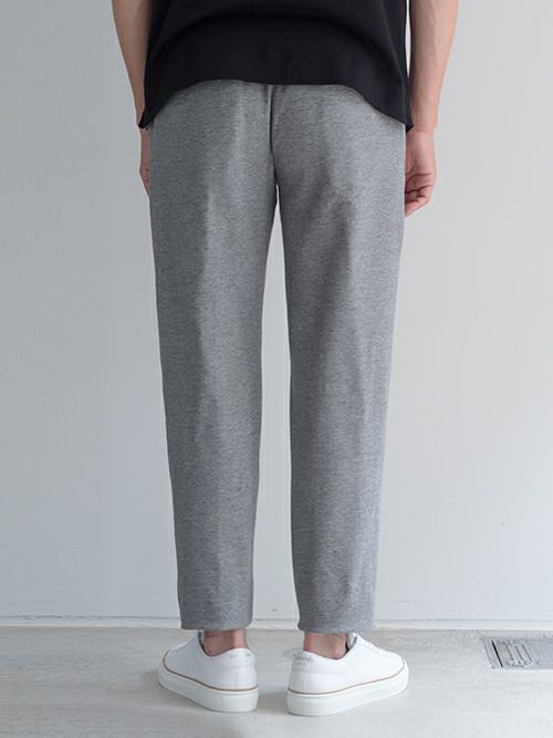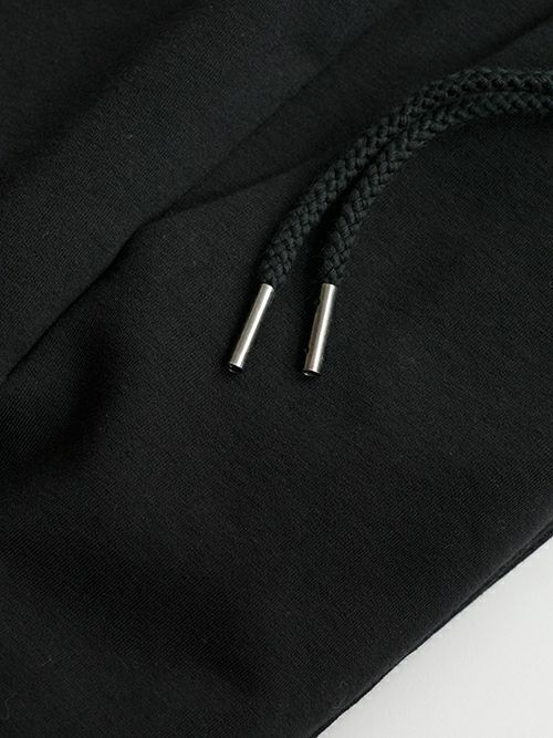特殊な工程で縫製しており、着心地とシルエットに拘った一枚。綿裏毛にストレッチ糸を入れ込んで編んでおりより動きやすく、ウエストは調整可能なドローコードの付いたゴム仕様。ベルトループがある事でスタイリングの幅が広がり、アクティブシーンだけでなくファッション性も高い一着です。