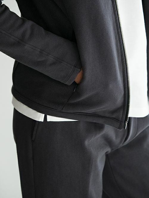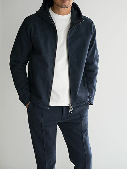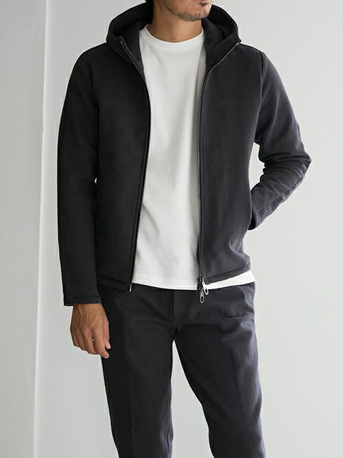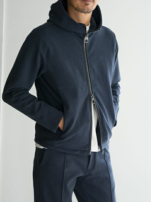 特殊な工程で縫製しており、着心地とシルエットに拘ったスウェットパーカー。綿裏毛にストレッチ糸を入れ込んで編んでおり、伸縮性に富んだストレスフリーな着用感です。