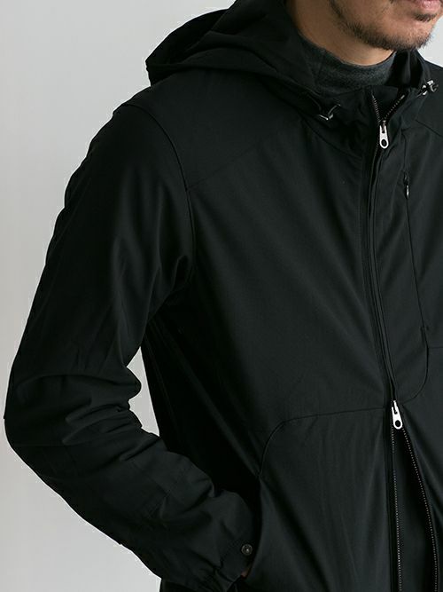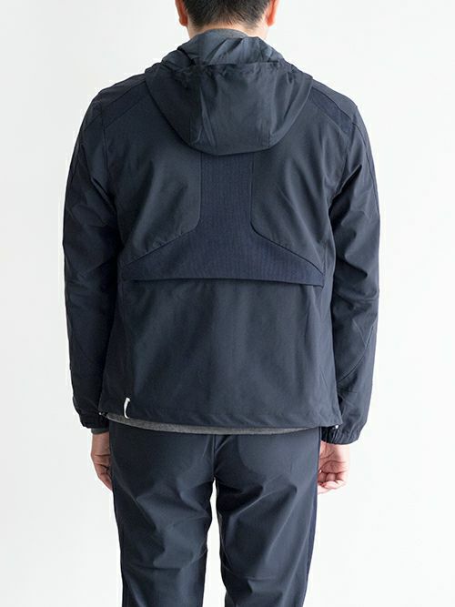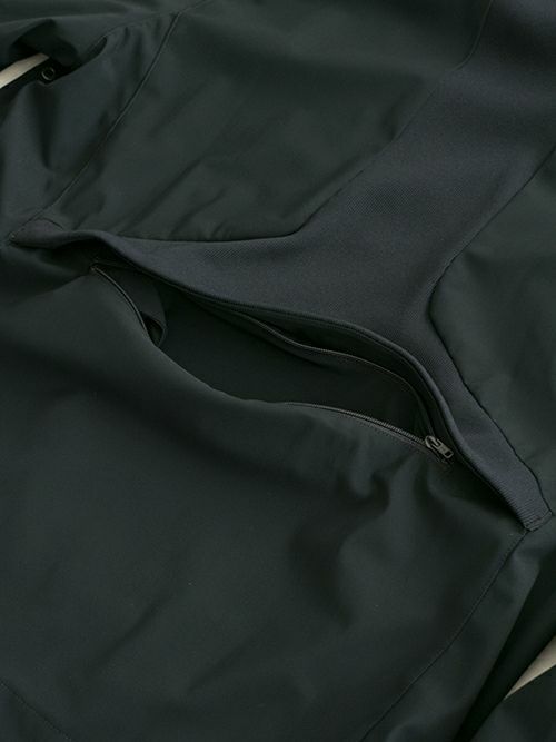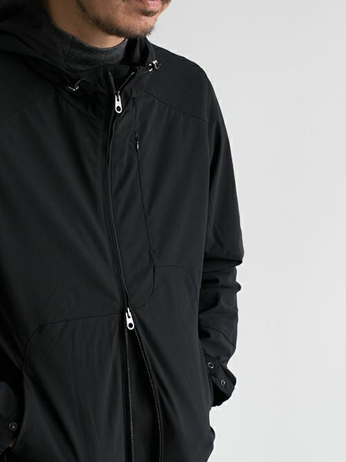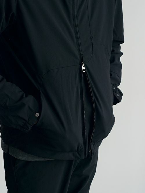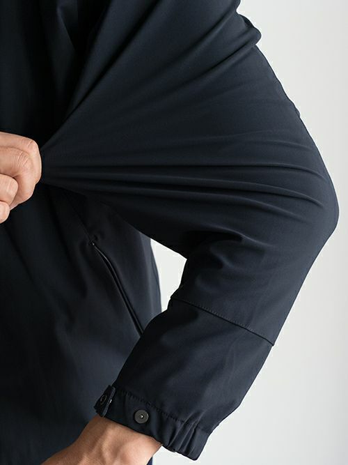 この生地は極細ナイロンとライクラを結束したもので、強い耐久性と物質安定性、また回復力にも優れ、また、UVカットで防シワ性、丸洗い可能とゴルフやジムなどのスポーツ時にも適しています。まさに大人がジムへの行き帰りなどで着用したり、綺麗めのパンツと合わせて単品使いもできるアイテムです。各パーツは春夏物同様に一つ一つ拘って選んだもの。ファスナーも勿論、Lampoに別注したSuper Lampoの逆開を採用しました。ブルゾンはポケッタブルになりますが、生地が少し厚手になった分、収納時の袋を少し大きく変更しています。