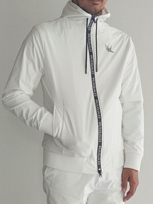 POLARTEC このファブリックは体を包み込むよう4方向にストレッチし、非常に通気性が良く汗をかいても皮膚をドライに保ち、軽くて暖かいのが特徴です。快適な着用感でセンタージップのロゴがポイントとなっています。同生地のパンツ