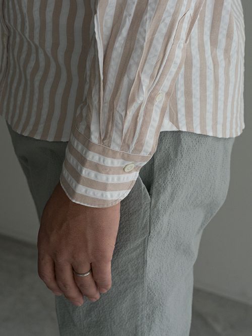 コーディネートのアクセントになるストライプ柄。春夏シーズンにぴったりな肌当たりの良い、ストレッチの効いたコットンで仕上げられています。見た目だけでなく着心地も軽やかな一着。こなれた大人のカジュアルジャケットスタイルを演出します。