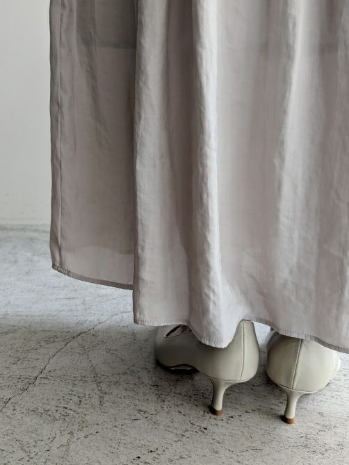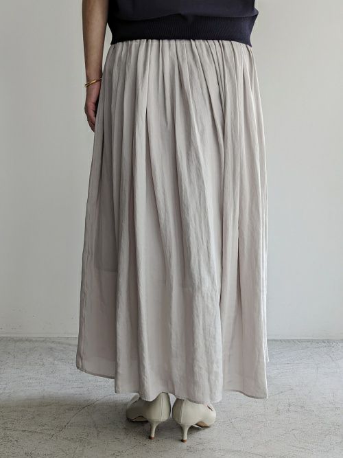 上品なサテン地を使用したロングスカート。動くたびにふんわり揺れる女性らしいシルエットを演出。軽い履き心地でウエストゴム仕様なのでカットソーやブラウスをインしたスタイルもキマります。
