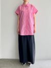 はっきりしたピンクとレッドの比翼タイプのストライプシャツ。やわやかなコットン素材で、一枚で主役になるデザインで存在感の放っています。