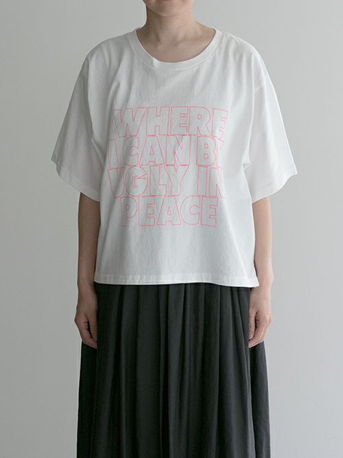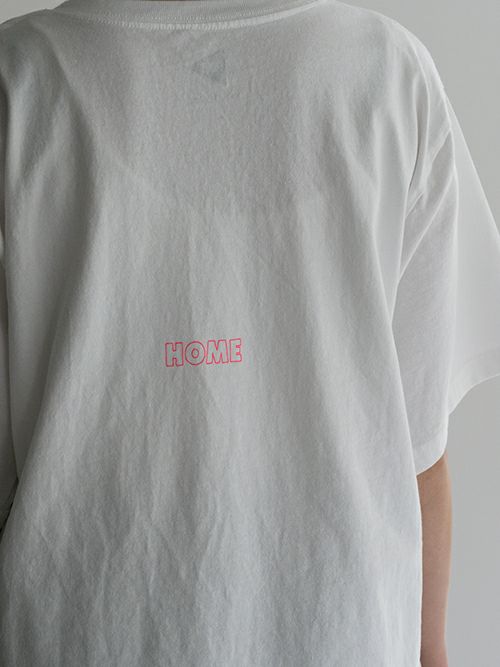 『やっぱり家が一番落ち着く』といった意味合いのメッセージが、ポップなカラーリングでプリントされています。ワイドシルエットで、着心地は軽くストレスフリーな肌触り。ボリュームのあるパンツやスカートなど、ボトムスを選びません。