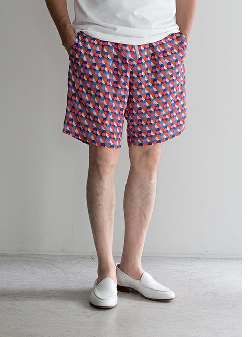 肌触りの良いレーヨン素材を使用したショートパンツ。ウエストはゴム仕様で、調節ができるドローコード付き。