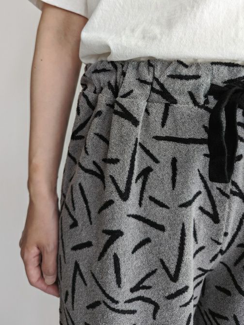 ウエストはドローコード入りゴム仕様のリラックス感のあるデザインで、Tシャツやフラットサンダルなどと相性が良く、夏に向けて取り入れたい1着です。裾は絞りの緩やかなゴムが入っております。